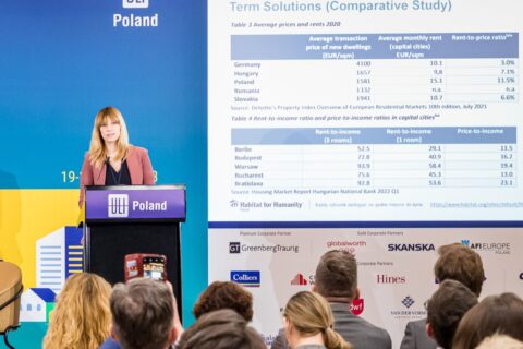 The above “info-burst” opened the floor for another crucial topic, highlighting the ‘Rising challenge of creating affordable living’ presented by Katarzyna Przybylska, Head of Advocacy at Habitat for Humanity Poland. She went through best practices and success stories that could serve as a benchmark or directly cater to the needs of the slowly incubating affordable housing sector in Poland. She also familiarized the audience with the state-supported but broadly unknown housing policy concept Social Rental Agency and explained the importance of similar initiatives for Poland’s sustainable growth. In the discussion that followed, the panellists considered main obstacles and diverse ways in which private, public, and NGO sectors could act together to speed up and scale up the delivery of social housing projects.
